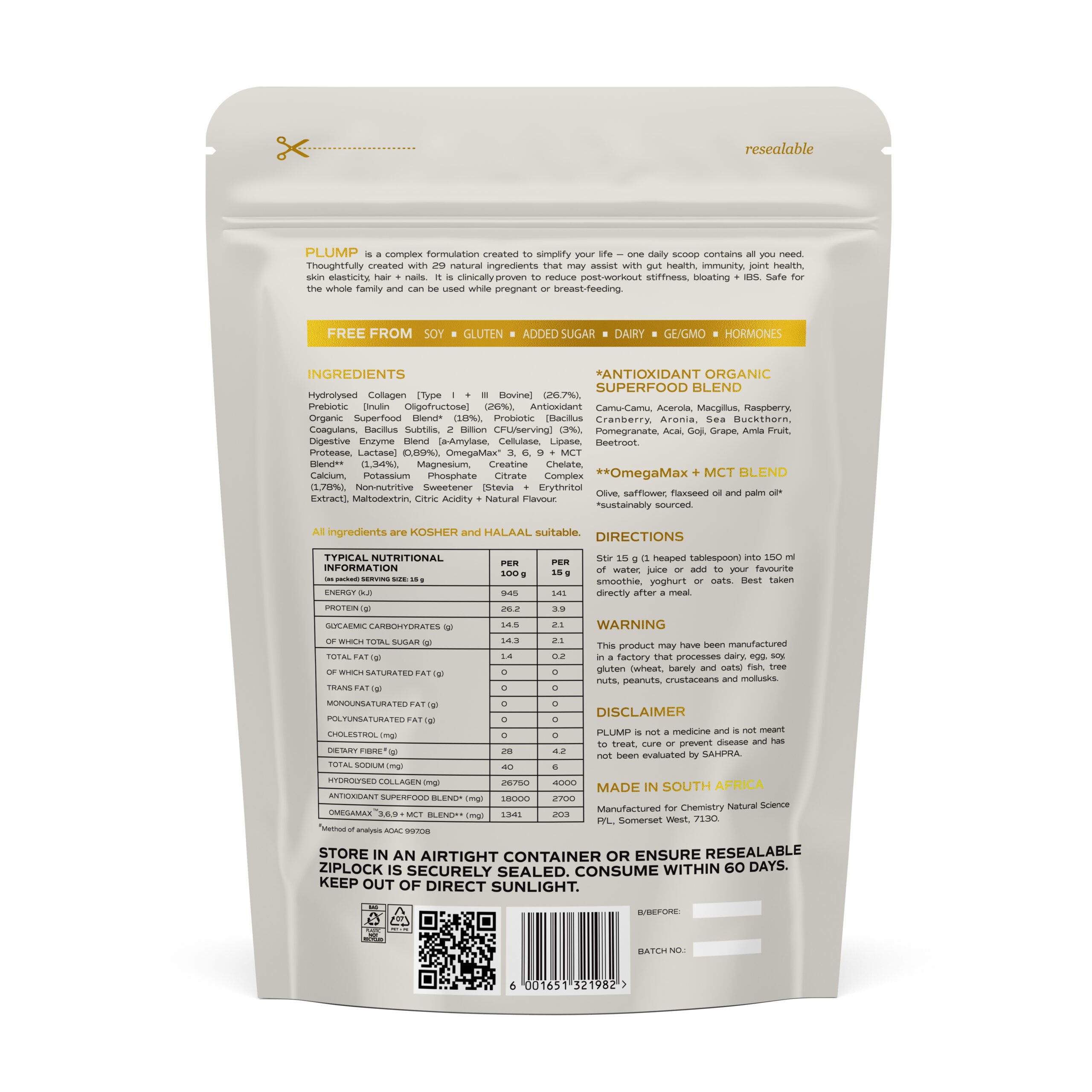 How to use: Mix 1 serving daily with cold water or add to a smoothie. Use consistently for best results. Available in 105g and 375g.