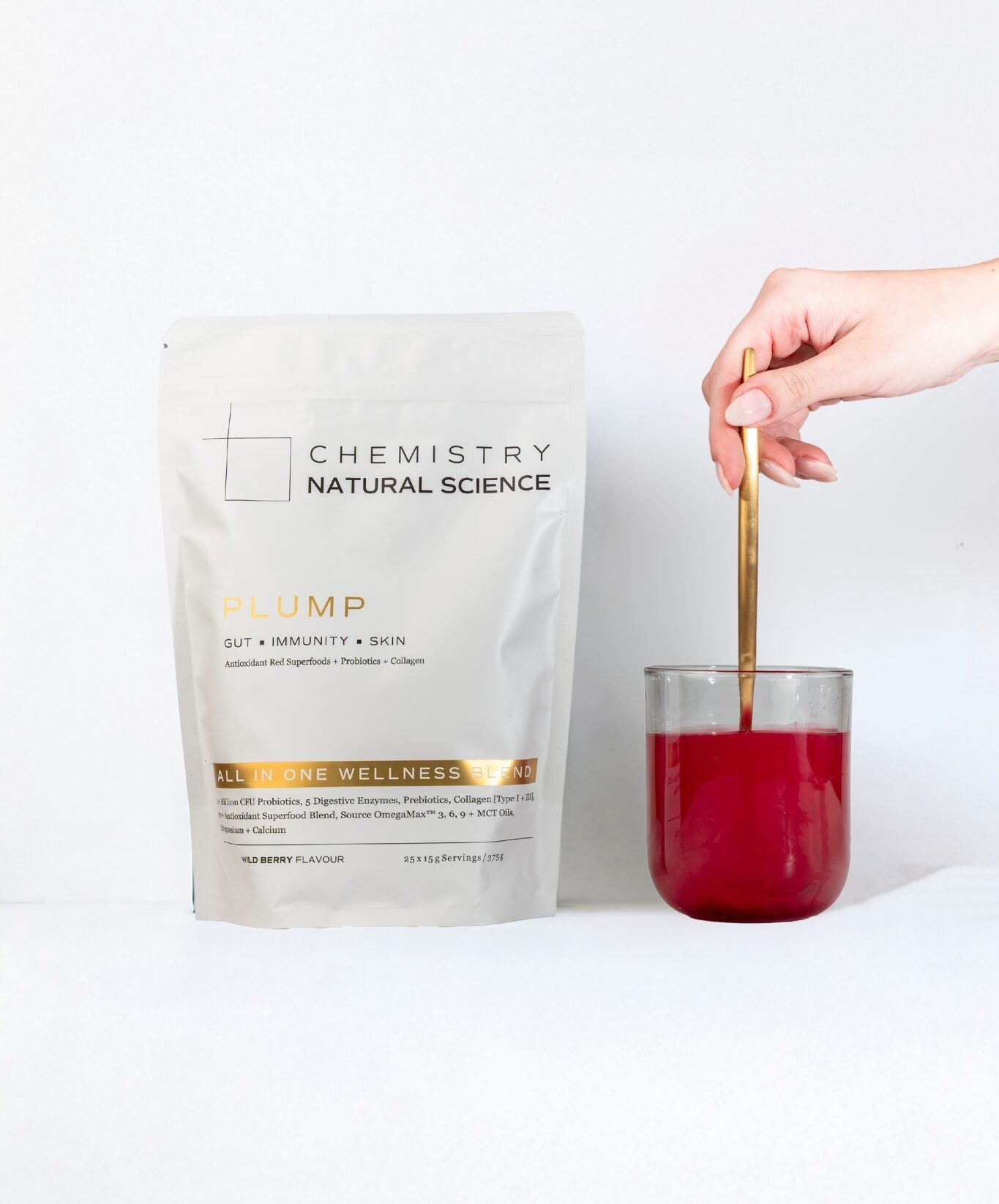 A wild berry wellness blend with collagen, probiotics, prebiotics, and digestive enzymes — supporting gut health, skin, hair, hormonal balance, and nutrient absorption from the inside out. Available in 105g and 375g.